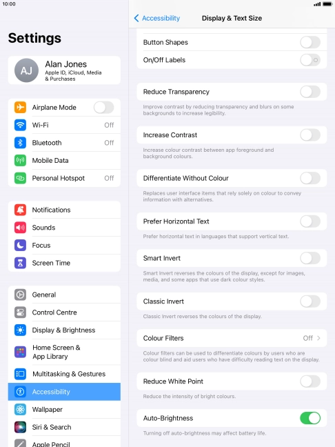 3 Turn automatic brightness on or off