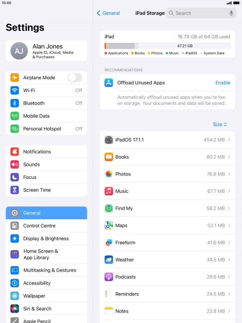 The memory on your Apple iPad Air (2019) iPadOS 17 is full