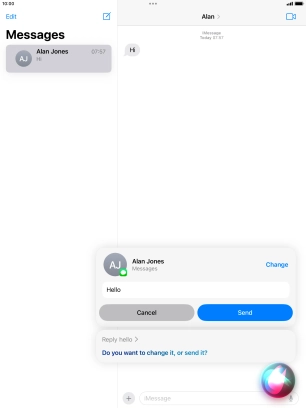 If an application is open on your tablet, such as a Mail or Messages, you can also use the functions available here, e.g.: REPLY [text].