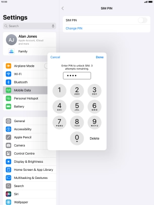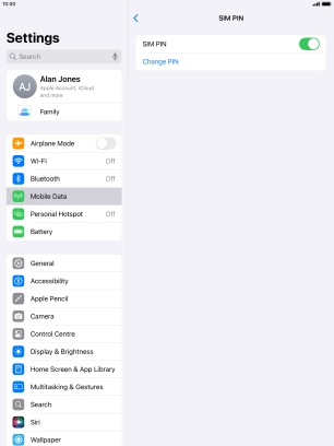 Press the indicator next to "SIM PIN" to turn the function on or off.