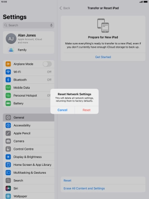 Press Transfer or Reset iPad.