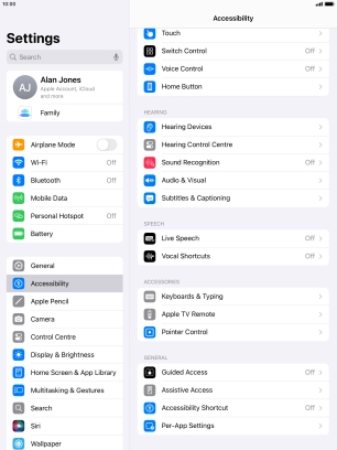 It is possible to select more accessibility settings, you can, e.g., turn the accessibility shortcut on or off, set up Guided Access and set up accessibility functions for certain apps.