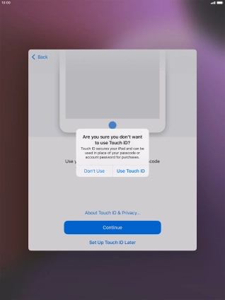 Follow the instructions on the screen to turn on use of Touch ID or press Set Up Touch ID Later.