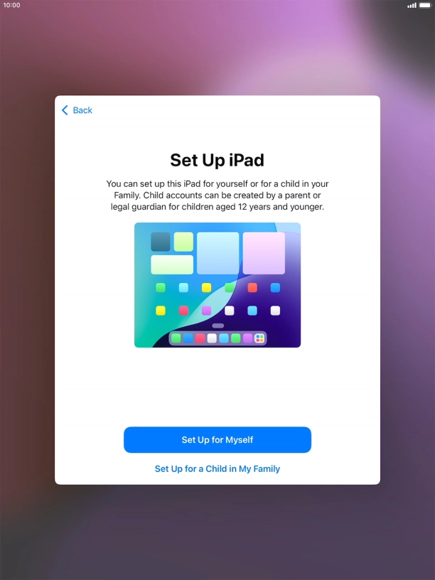 If your tablet will be used by a child below the age of 13, follow the instructions on the screen to set up an Apple ID for the child.