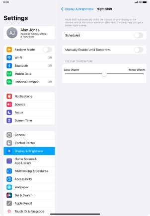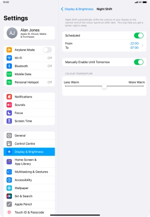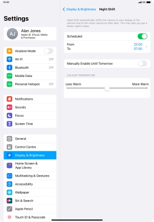 Select Night Shift settings on your Apple iPad Air (2020) iPadOS 17