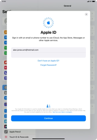 If you don t have an Apple ID, press Don't have an Apple ID? and follow the instructions on the screen to create an Apple ID.