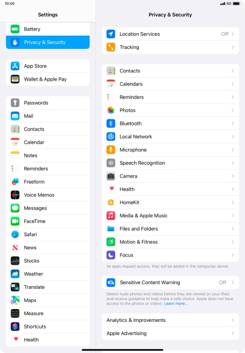 Press Privacy & Security.