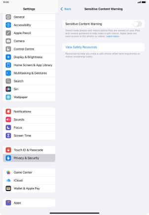 3. Turn Sensitive Content Warning for specific applications on or off