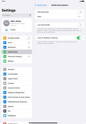 Turn data roaming on your Apple iPad Air (2020) iPadOS 18 on or off