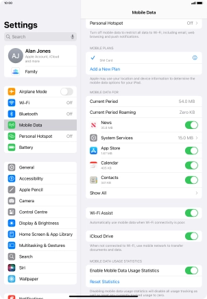 Press the indicator next to "Wi-Fi Assist" to turn the function on or off.