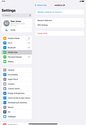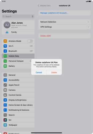 Delete eSIM on your Apple iPad Air (2020) iPadOS 18