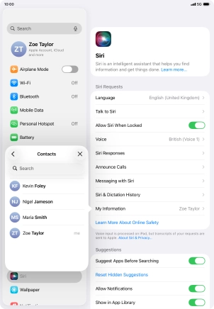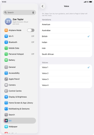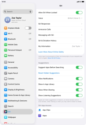Press the required setting to turn the function on or off. If you turn on the function, you need to follow the instructions on the screen to set up Siri to recognise your voice.