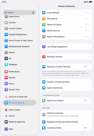 Press Privacy & Security.