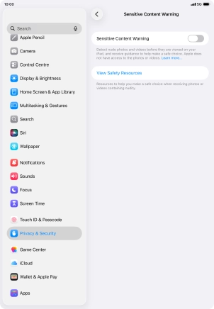 3. Turn Sensitive Content Warning for specific applications on or off