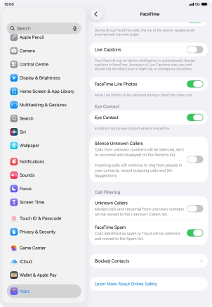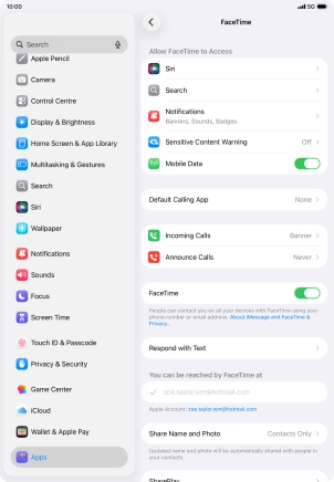 Press the required setting below "Allow FaceTime to Access" and follow the instructions on the screen to allow access for specific apps and functions.