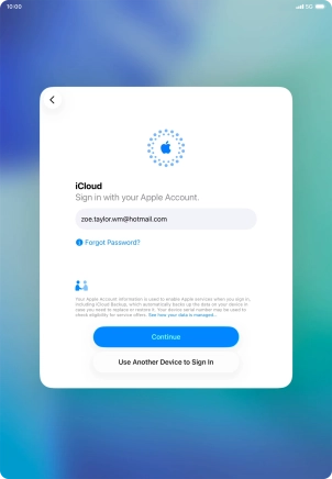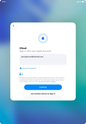 When this screen is displayed, your tablet is ready to restore content from an iCloud backup.