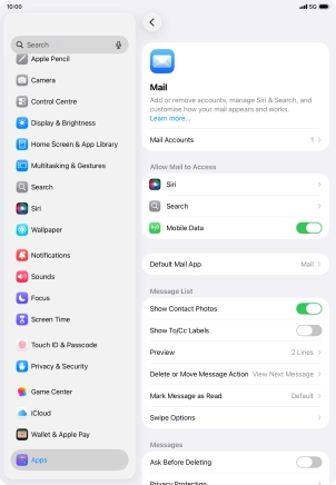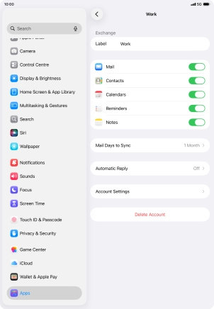 Delete email account on your Apple iPad Air (2020) iPadOS 26