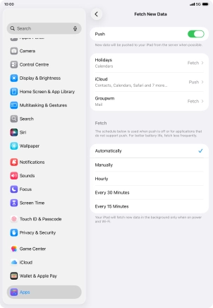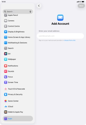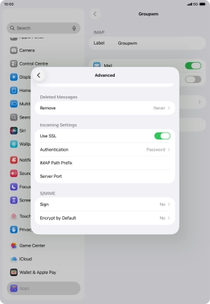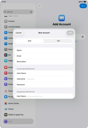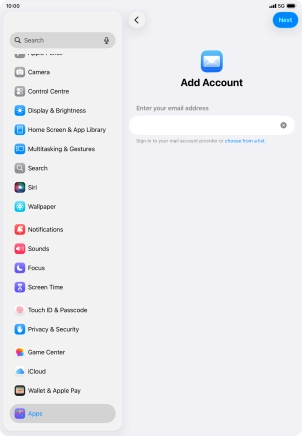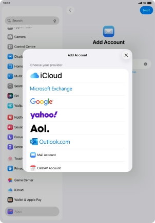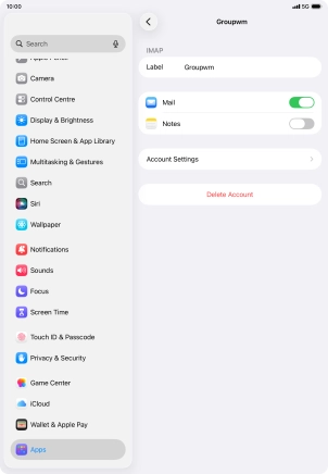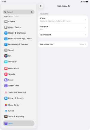 Press the required email account and follow the instructions on the screen to select settings for the specific account.