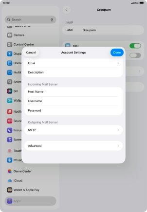 Press Username and key in the username for your email account.