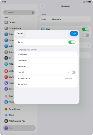Press Password and key in the password for your email account.