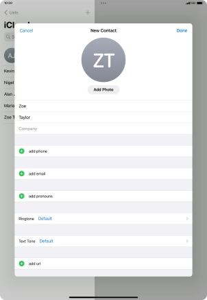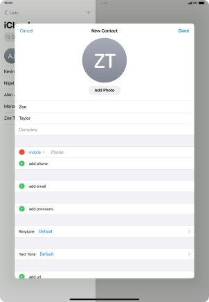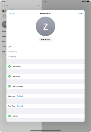 Create contact on your Apple iPad Air (2022) iPadOS 17