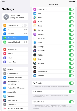 My Apple iPad Air (2022) iPadOS 17 uses a large amount of mobile data