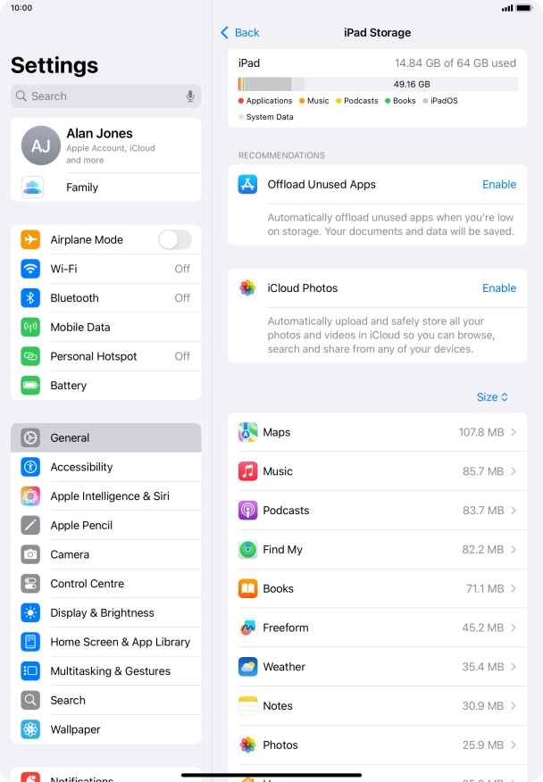 Press iPad Storage.