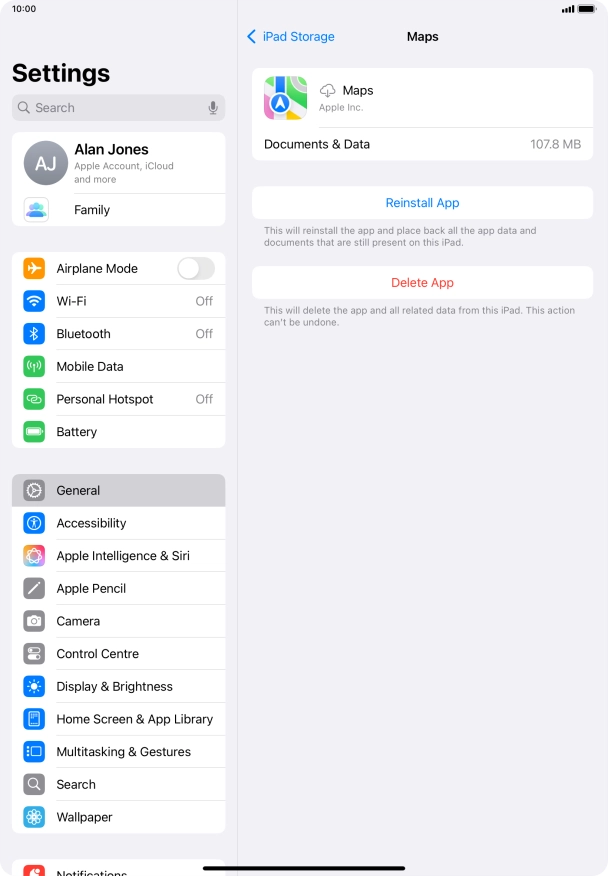 When you use this method, all app settings and data are saved in the tablet memory and are restored when you reinstall the app from App Store on your tablet.