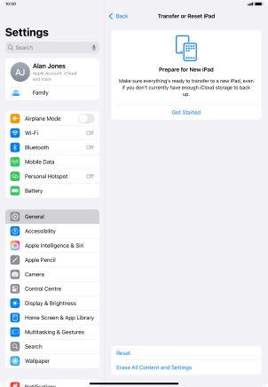 Press Transfer or Reset iPad.