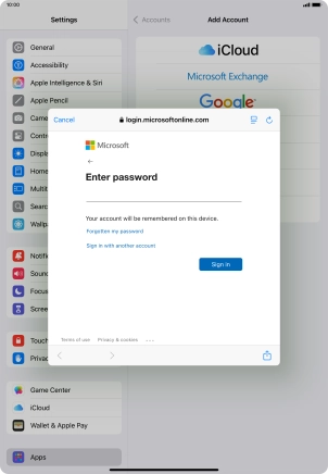 Press Password and key in the password for your email account.