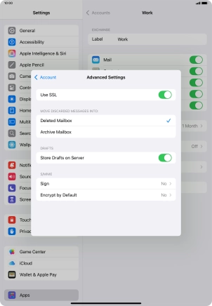 Press the required email account and follow the instructions on the screen to select settings for the specific account.