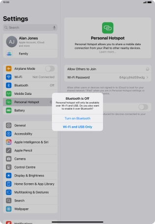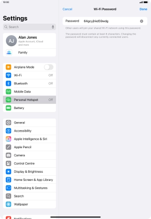 I can't use my Apple iPad Air (2022) iPadOS 18 as a personal hotspot