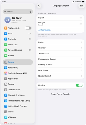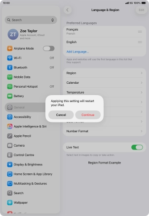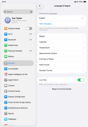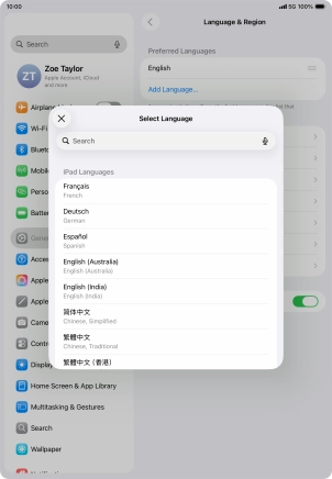 Select language on your Apple iPad Air (2022) iPadOS 26