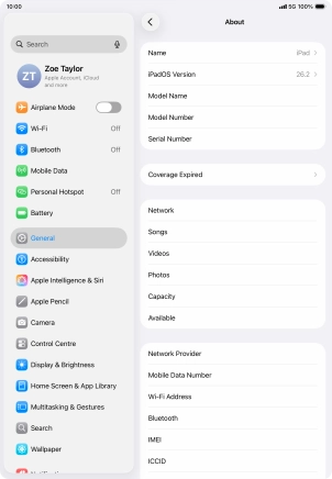 View software version on your Apple iPad Air (2022) iPadOS 26