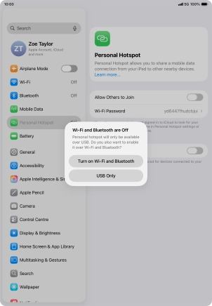 Use your Apple iPad Air (2022) iPadOS 26 as a personal hotspot