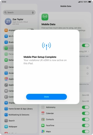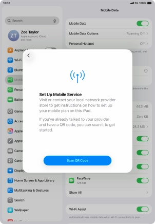 Place the QR code you've received inside the tablet camera frame to scan the code. If you’ve deleted your eSIM, you can re-add it using your existing QR code. If you’re having problems, see our FAQ.