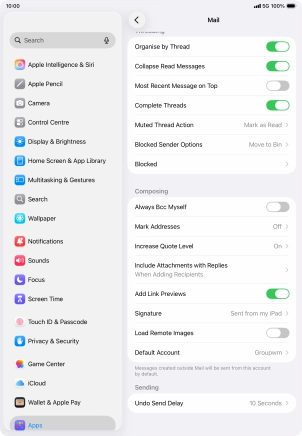 Select default email account on your Apple iPad Air (2022) iPadOS 26