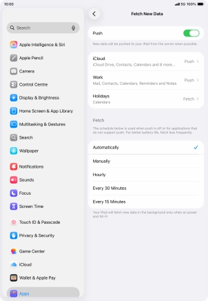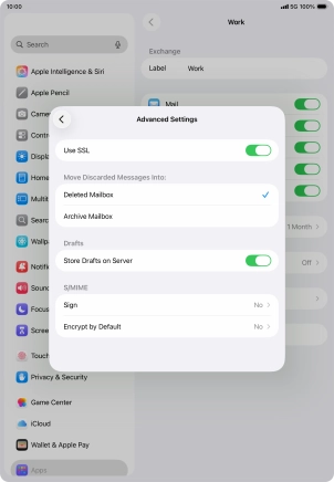 Press the required email account and follow the instructions on the screen to select settings for the specific account.