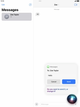If an application is open on your tablet, such as a Mail or Messages, you can also use the functions available here, e.g.: REPLY [text].