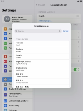 Select language on your Apple iPad mini (2019) iPadOS 17
