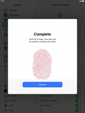 Press Continue. If you haven't previously selected a lock code, key in a code of your own choice twice.