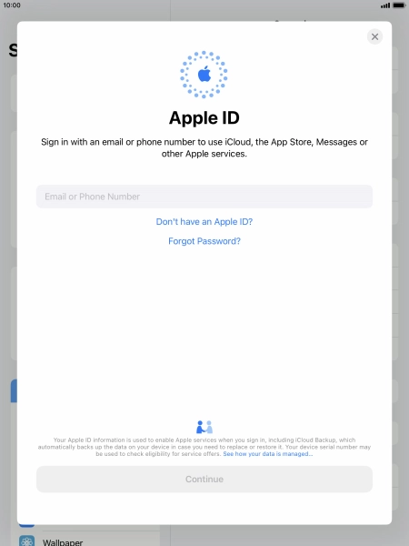 If you don t have an Apple ID, press Don't have an Apple ID? and follow the instructions on the screen to create an Apple ID.