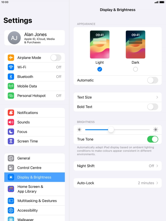 Press the indicator next to "Auto-Brightness" to turn automatic brightness on or off.