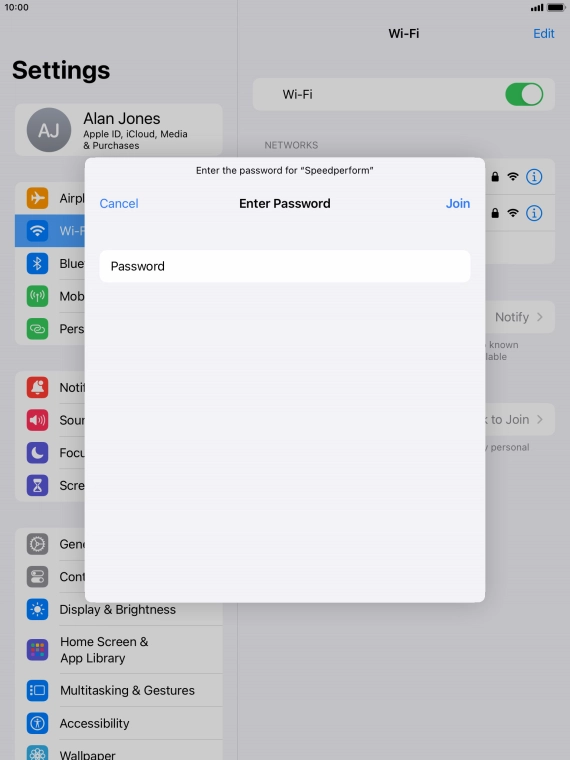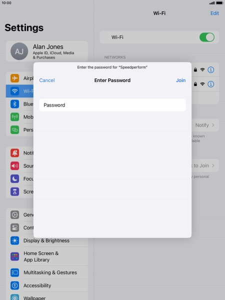 Press the required Wi-Fi network and key in the password for the Wi-Fi network.