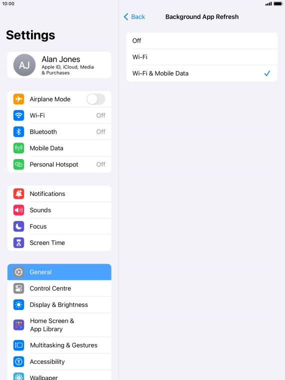 To turn off background refresh of apps, press Off.