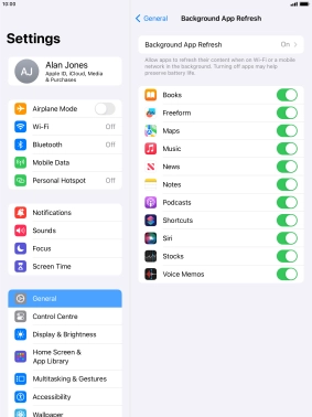 2 Turn background refresh of apps on or off