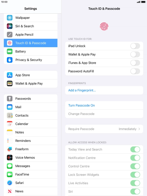 Find "Touch ID & Passcode"