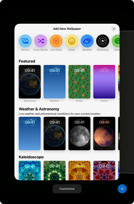 Press Customise and follow the instructions on the screen to customise the selected lock screen.