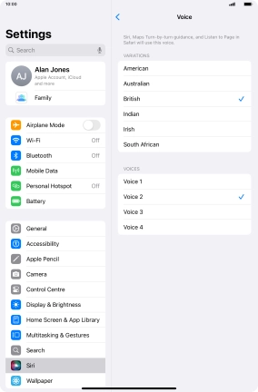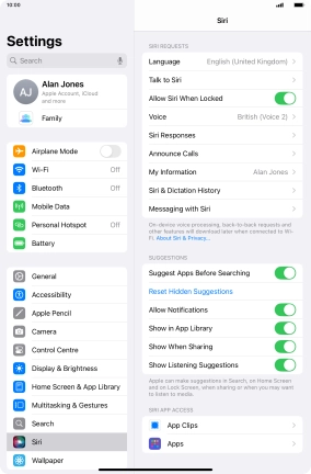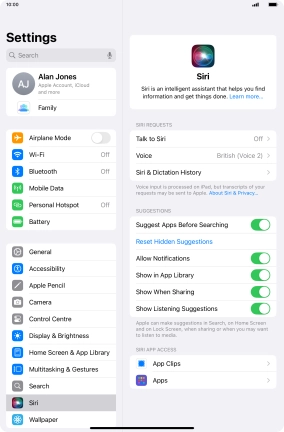 Select Siri settings on your Apple iPad mini (6th Generation) iPadOS 18