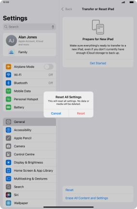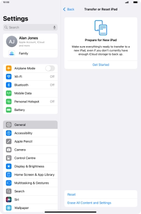 Press Transfer or Reset iPad.